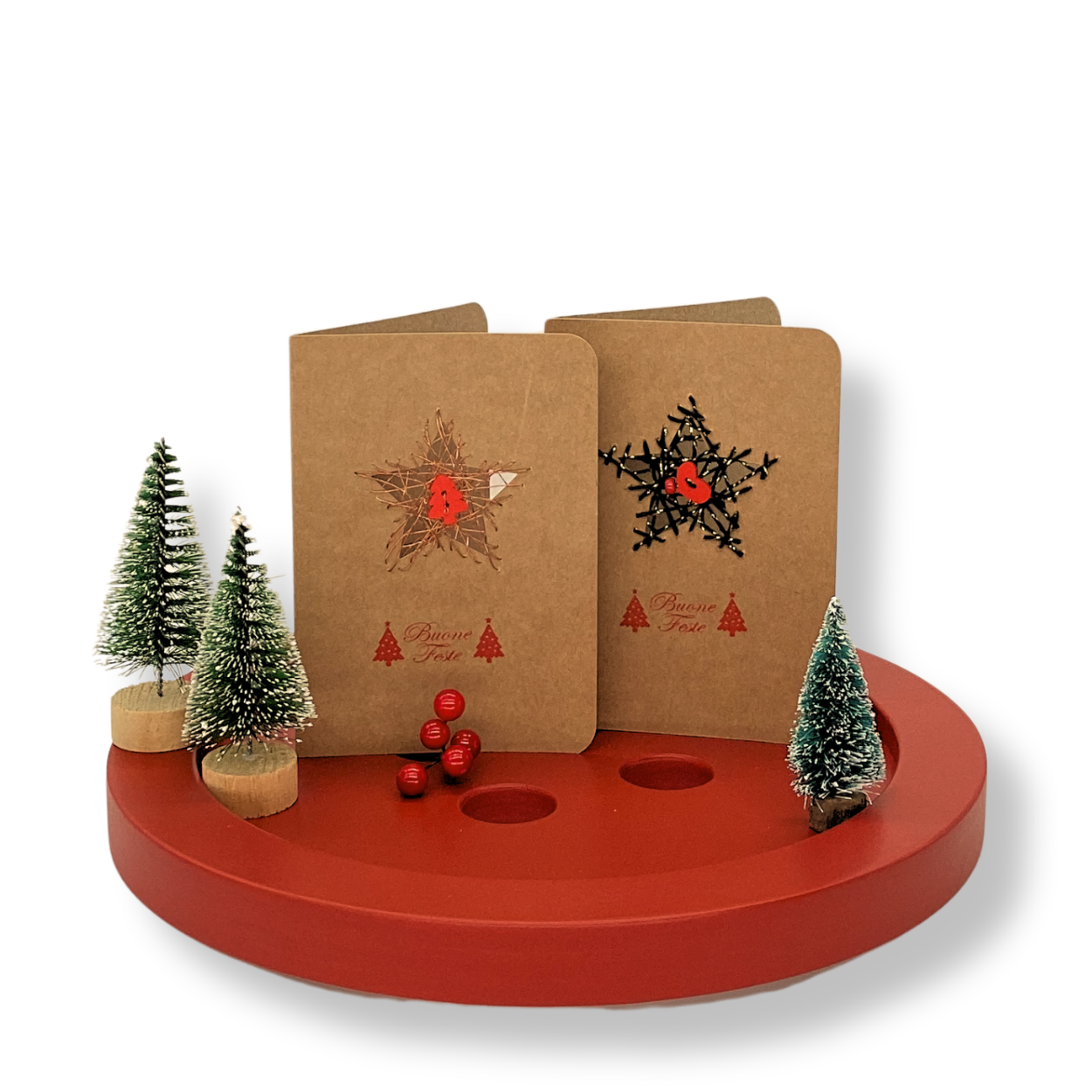 Un biglietto di auguri realizzato a mano dal Laboratorio Cucicuci del CSE.