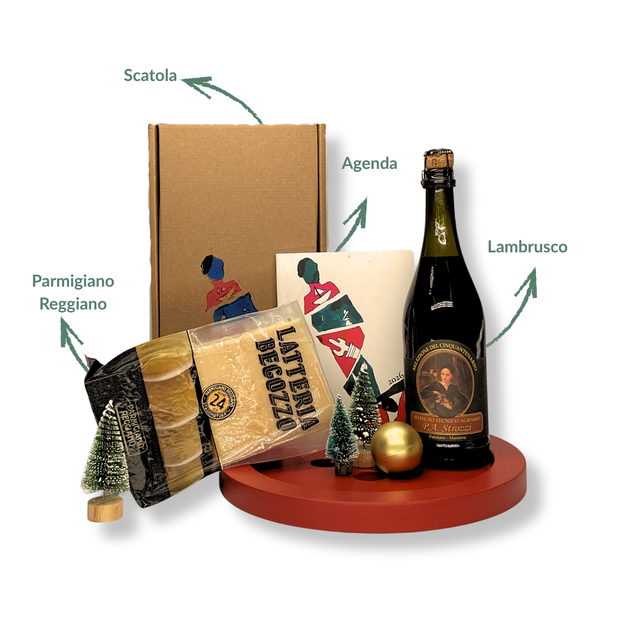 La Christmas box piccola racchiude 4 prodotti rappresentativi dei nostri servizi e delle nostre collaborazioni: